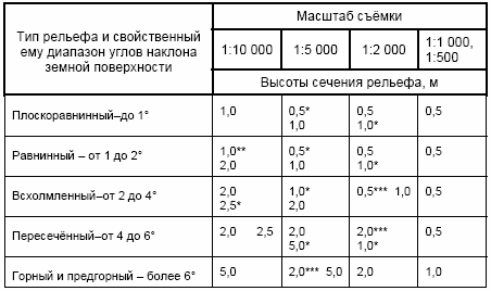 Высоты сечения рельефа для топографических съемок: